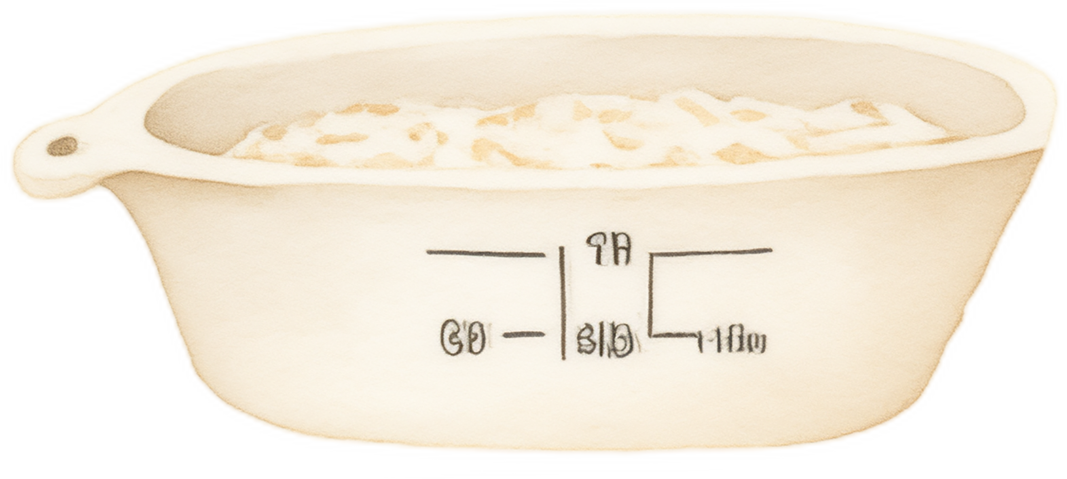 オートリーズ(重要):ボールに春よ恋、ライ麦全粒粉、モルトパウダー、水(ベースの230g)を入れます。粉っぽさがなくなるまでゴムベラや手でざっと混ぜ合わせます。この時点では捏ねません。乾燥しないようにラップやシャワーキャップをして、室温で1時間放置します。 ルヴァンの混合:1時間経ったら、ルヴァン種を加えます。指先で生地にルヴァンを押し込むようにしてから、生地の端を持ち上げて中心に向かって折りたたむようにして、ルヴァンが見えなくなるまで優しく混ぜます。激しく捏ねる必要はありません。
